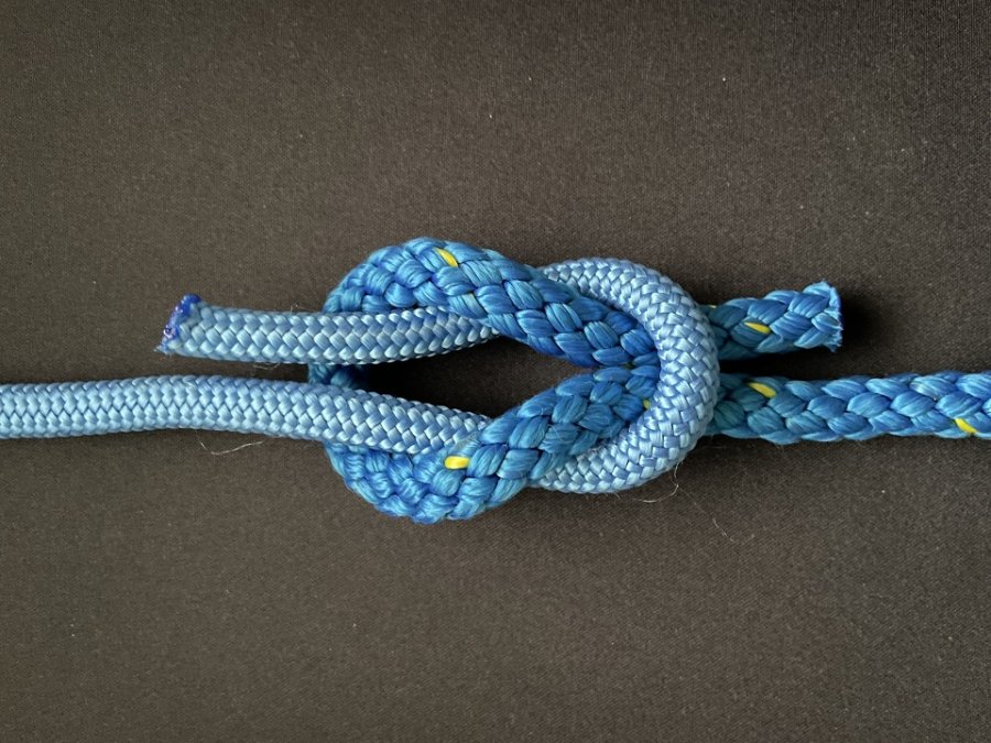 Der Kreuzknoten ist ein Verbindungsknoten zum verbinden von Leinen gleicher Stärke.