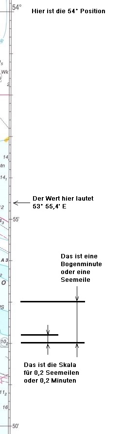 | Besteckversetzung <= 1sm sind +- 10 Grad oder +- 0,1 sm | der Karte entnommen |