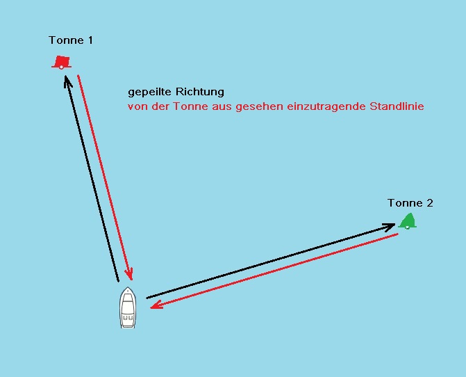 Die angepeilen feststehenden Objekte müssen sichtbar und in der Karte verzeichnet sein.