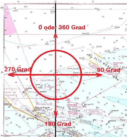 und die Bezugslienien sind die Längenkreise. Rechtweisend ist immer in die Karte einzuzeichnen oder aus der Karte zu entnehmen.