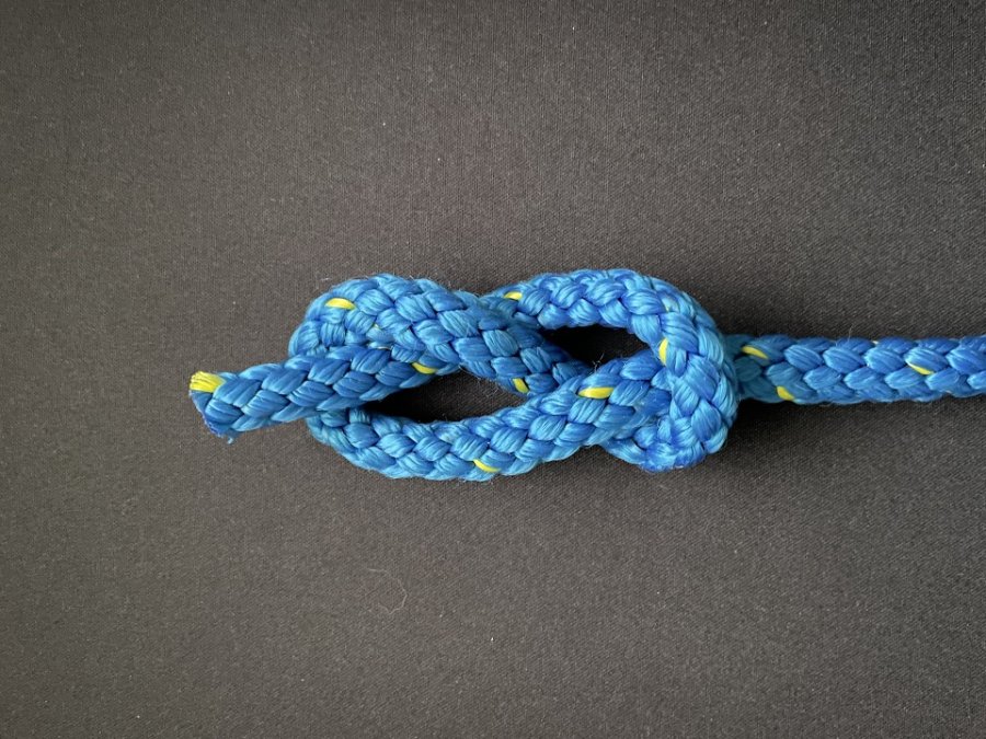 Der Kreuzknoten ist ein Verbindungsknoten zum verbinden von Leinen gleicher Stärke.
