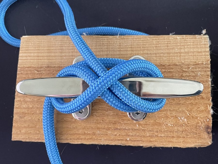 Dann wird die Leine zwei- bis viermal kreuzweise um die Klampe gelegt.