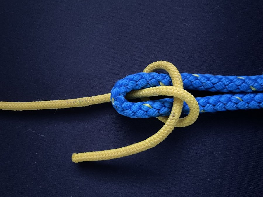 Der Stopperstek ist ein Klemmknoten, mit dem eine dünnere Leine mit einem dickeren Seil.